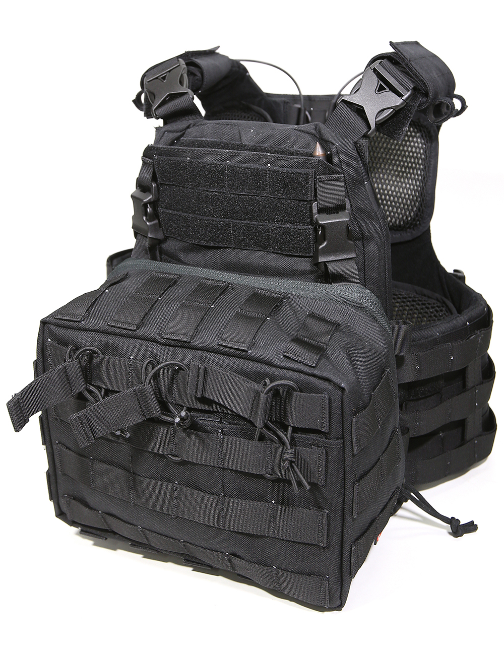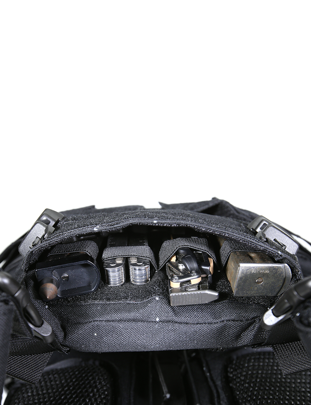 500D CORDURA로 제작되었고, 검은색, MultiCam®, 탄색이 제공됩니다. 별도의 색은 주문생산 가능합니다. 액세서리 부착을 위해 사면에 MOLLE와 밸크로가 있고 우진프라스틱 버클을 사용하였습니다.